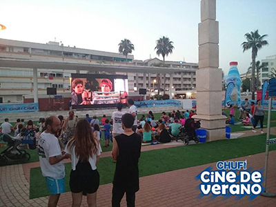 La diversión se completa cada noche en el cine de verano Chufi, en el que a pie de playa se proyectarán grandes éxitos de los años 80 y 90 como ET, Los Goonies o Regreso al Futuro.